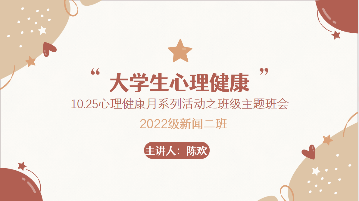 主题班会全覆盖引领。2022级新广网播四个专业于10底纷纷开展老员工心理健康主题班会。班会由各班心理委员主持,班级全体同学参加。各班级围绕心理健康定义、老员工心理健康现状、缓解心理压力的方法以及送给老员工的建议四个方面,结合老员工心理健康现状,向同学们普及心理健康知识,就相应心理健康问题给予了解决办法和应对措施,鼓励同学们进行积极的自我暗示。系列心理健康主题班会在帮助同学们调整合理健康的老员工活状态上起到了积极作用。