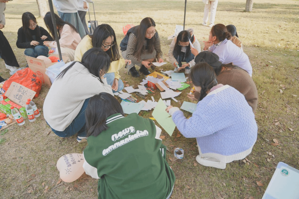 户外团辅共塑阳光心灵。11月8日下午,2022级新广网播四个专业五个班级的同学们于津南草坪开展心理健康教育团辅活动。本次活动主要分为两个环节,分别是诗会和团体辅导活动。在诗会上,有的同学自行挑选喜欢的词语、句子进行裁剪后写字加以修饰,再粘贴到卡纸做成的衬纸上,最终拼成一首积极向上的小诗。还有的同学将烦恼写在气球上,扎破气球抛弃烦恼。在团体辅导活动中,主要开展了“大风吹、小风吹”、“梅花朵朵开”、“情有千千结”和“万里长城”游戏。丰富多彩的游戏培养了同学们的合作意识、增强了团队的凝聚力,使每位同学都认识到个人和团队的价值,实现合作与共赢。