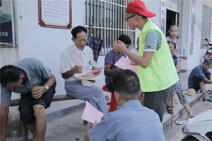 7月19日,九姑乡联合团队开展政策宣讲活动。一行人来到九姑乡白马村老年活动中心,村民们围坐成一圈认真倾听队员们的讲解。实践队员王玉杰询问村民家庭的基本情况,根据具体情况为村民解疑答难。他就教育扶贫、就业扶贫、易地扶贫搬迁等十项精准扶贫政策做了详细的讲解,让村民更加清楚地了解相关政策。