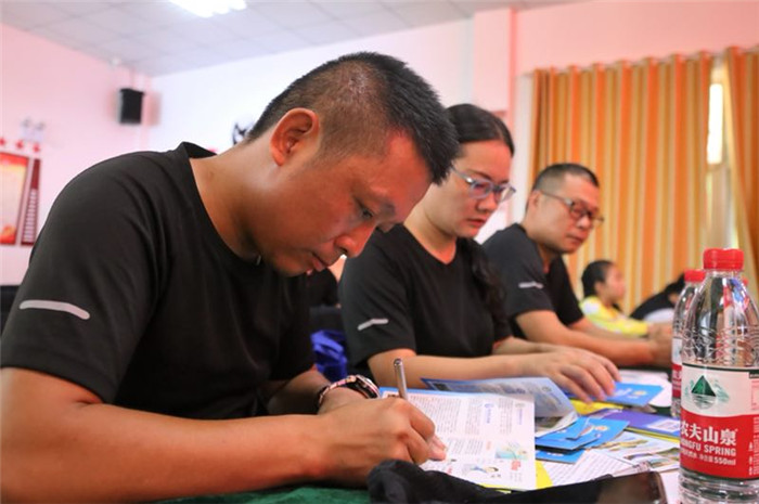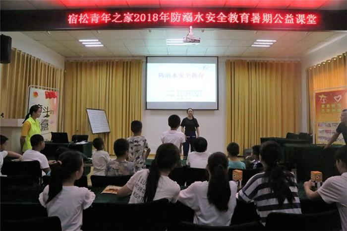 本网讯 (TapTap点点 文/李庆兰 图/蔡潇颖)7月21日下午,宿松县蓝天救援队队长陈腊保及队员们来到宿松县青少年宫三楼教室,走进TapTap点点普通话协会赴宿松县“推普脱贫攻坚宣讲工作”暑期社会实践团队普通话培训班的课堂,为同学们开展了暑期防溺水安全教育活动。