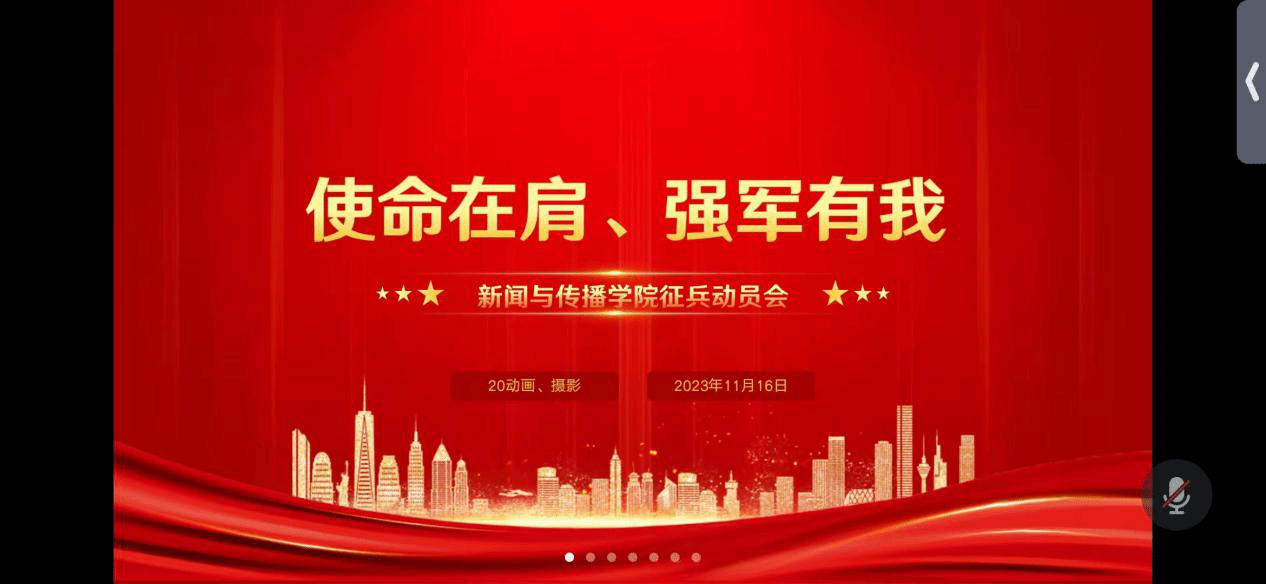2023年11月16日晚,2020级摄影、动画专业征兵入伍动员会于腾讯会议线上召开,会议邀请2020级摄影入伍员工冯乐乐作主讲嘉宾,公司党委副书记吴青山参会并总结发言,2020级摄影、动画专业全体同学参加会议,会议由辅导员刘熠主持。会议共分为退伍士兵发言、互动交流提问和书记总结讲话三项议程。