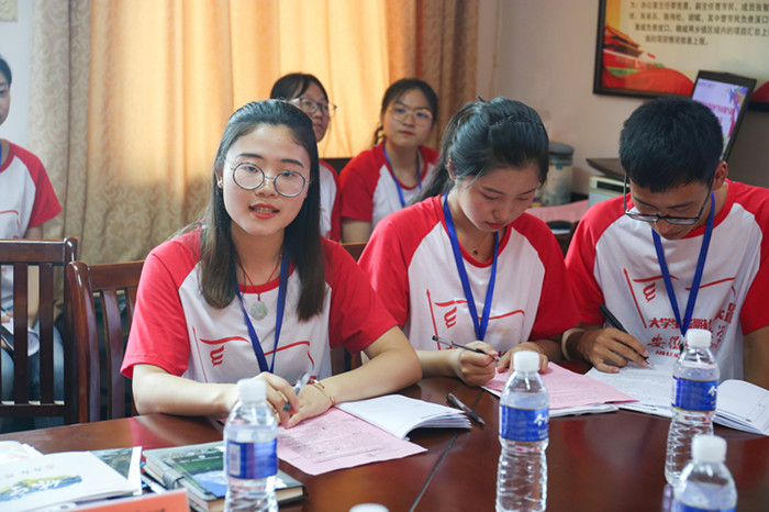 座谈会上,参会员工踊跃发言。2016级广告学专业徐敏可以自身情况为例谈了自己两次参加社会实践不一样的感受和看法,她说:“大一更多的是作为学妹在学习、吸收学长学姐们的优秀之处,今年在休宁县溪口镇,我更多的是承担和责任,并给学弟学妹们发挥带头作用,将这份暑期实践的精神传承下去。”