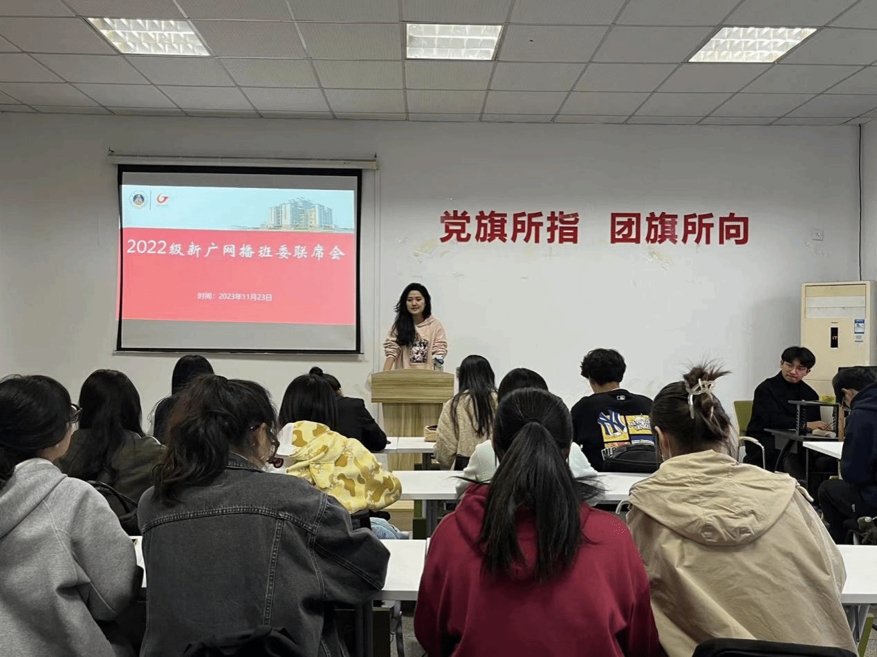 为进一步促进各专业的交流合作,增强班级凝聚力,推动良好班风学风建设,2023年11月23日下午,辅导员李梦圆于公司楼召开2022级新广网播班委联席会。2022级新闻学、广告学、网络与新媒体及播音与主持艺术各班班委参会。