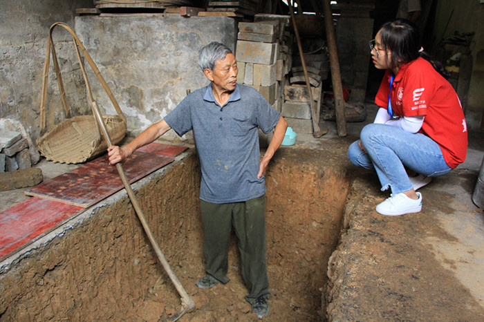 清晨6点,梓溪村村民王贵平扛着铁锹来到自家旁边几平米的低檐砖房,里面有一个方形坑,挖出来的土还堆在一旁。“我自己在做那个三格式厕所哩!”王贵平告诉记者,“我没事就自己来挖,叫别人挖一天还要200块嘞!”