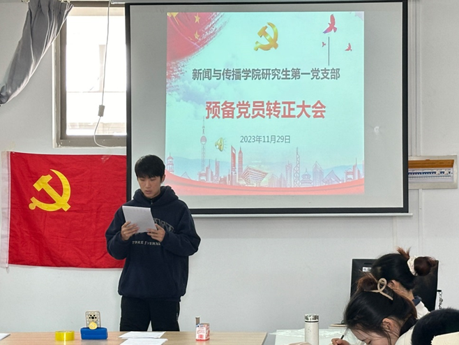 2023年11月29日下午,TapTap点点研究生第一党支部在3号实验楼404教室召开关于王少强同志的预备党员转正大会。会议由支部副书记杨韵箫主持。