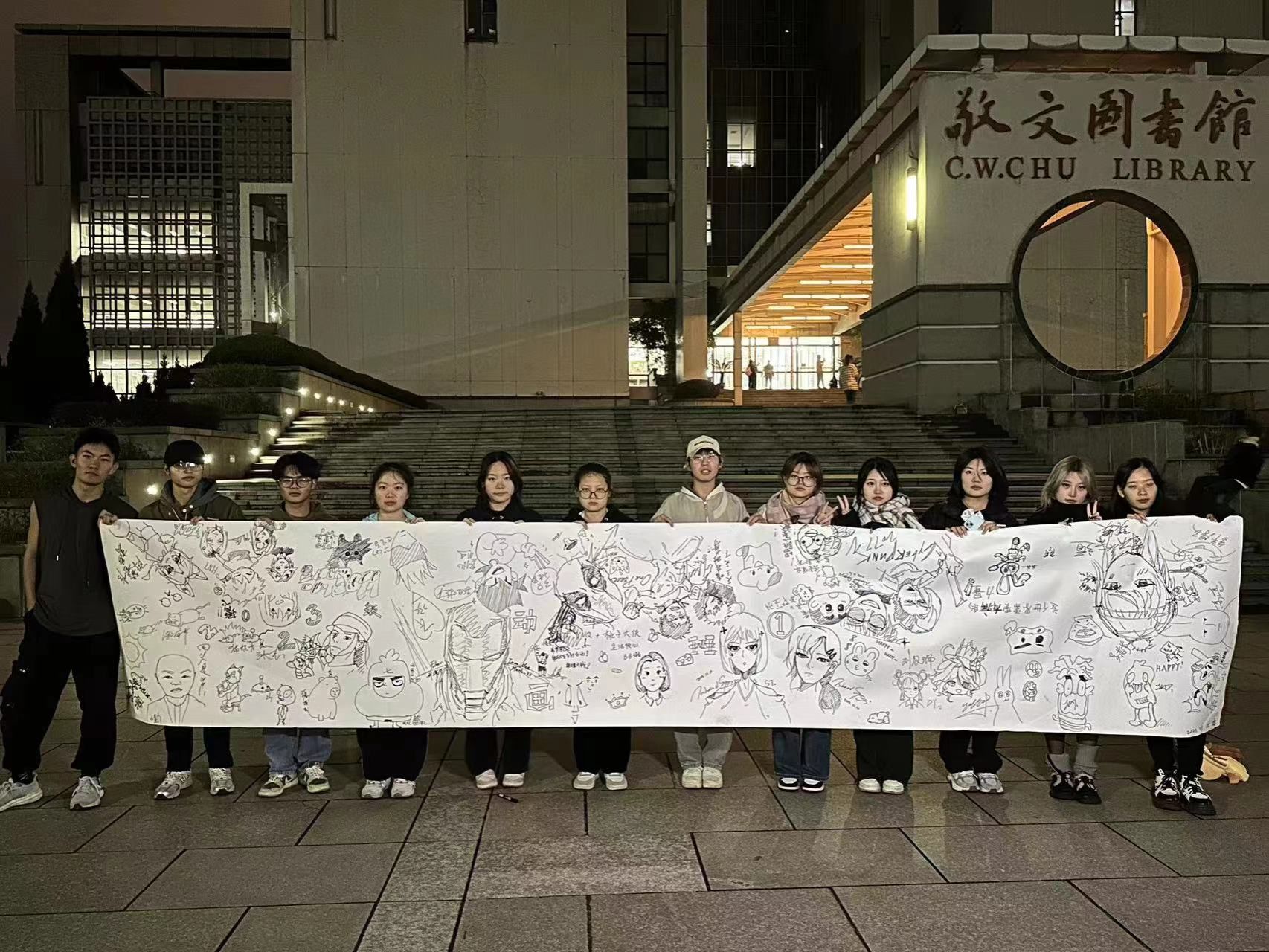 游戏结束后,全班同学争先恐后地再提前准备好的横幅上面留下自己的特色签绘,同学们热情洋溢,过程中由影制班的同学们进行了全程的拍照记录,全体班委们留下来举着由全体同学创作的画作合影留念。很多同学都表示自己通过这次活动感受到了美好的大学时光,还有不少同学通过朋友圈晒出自己获得的小奖品。通过这场游戏,同学们之间的陌生感逐渐消失,取而代之的是相互之间的熟悉和亲近。