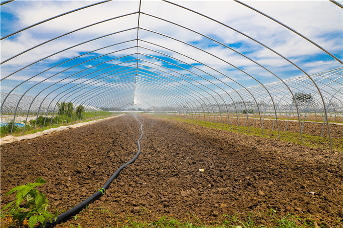 阳光从西侧照过来,投在佘扬付黝黑的皮肤上,上身一件红色长袖大褂,下身一条深蓝色短裤,他赤着脚,弯着腰,一手牵引农药管,一手持紧喷灌杆,尽可能将给每一株草莓苗“吃上药”,以防黄萎病在草莓棚里滋生蔓延。