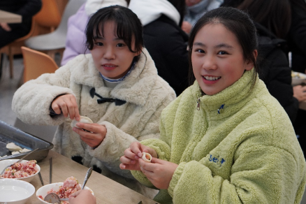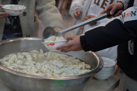 饺子端上桌时,同学们已拿着碗筷排起长队,迫不及待的想尝一下自己的劳动成果。热腾腾的饺子冒着白汽,卷入口中温暖了胃的同时也温暖了每一位同学。