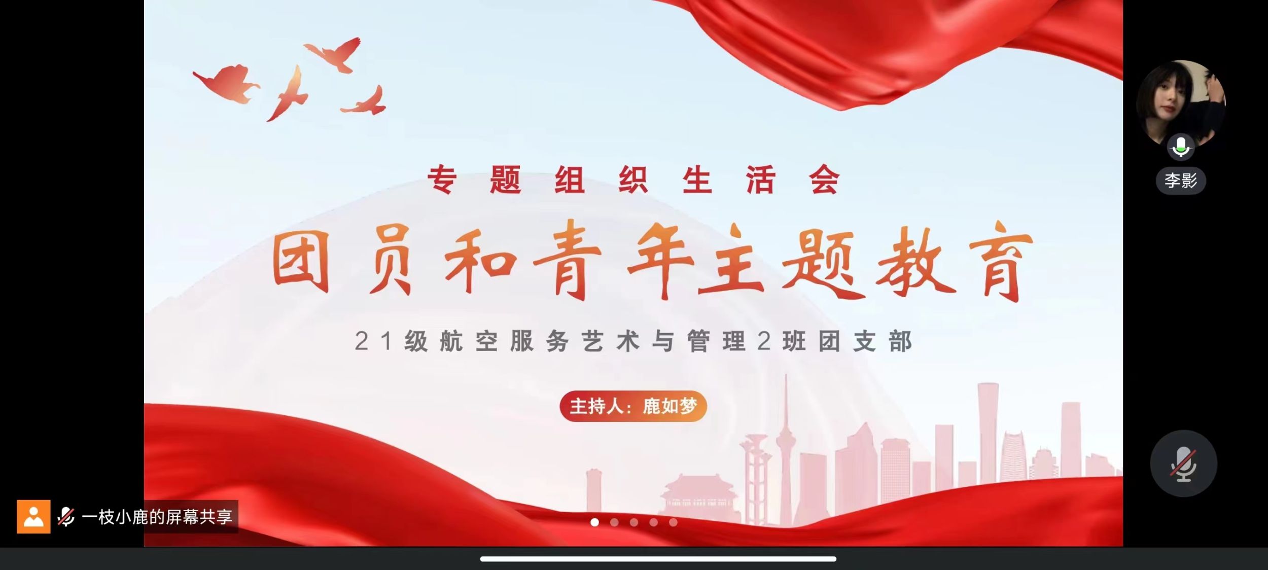 为深入贯彻党的二十大精神,紧密联系团员思想学习工作实际,交流学习体会、对标先进标准、查找差距不足、激发责任担当,21航服1、2班近日在腾讯会议召开“青春逢盛世,奋斗正当时”专题组织生活会暨团员民主评议会。全体团员和辅导员张雁参会,会议由团支书主持。