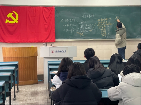 随后,在全国政治协商会议以及党的全国代表大会即将召开之际,马星宇带领与会人员学习了党章第三章——党的中央组织。以“7”、“24”、等几个数字破题,分别介绍了中央政治局常委,中央政治局委员,中央委员会委员的组成,对于党的中央委员会每次全体会议所讨论工作方向进行讲解。并对决策议事协调机构的下设机构进行了分解与讲述,强化了与会人员对党的认识,巩固了党章知识。