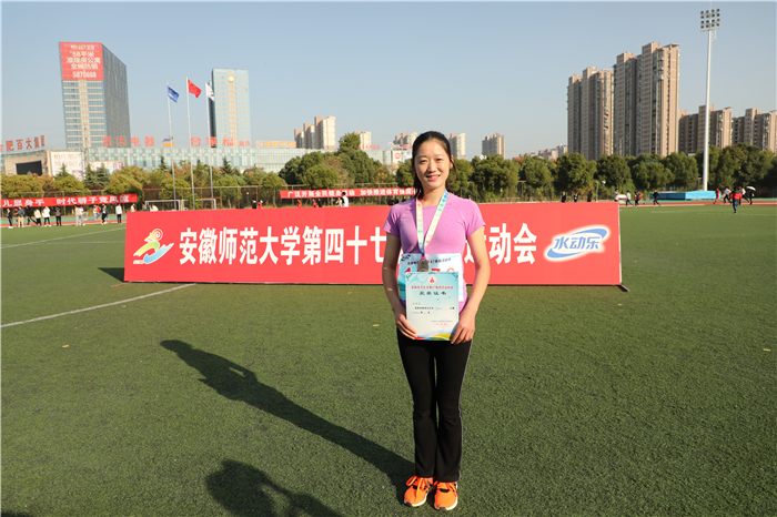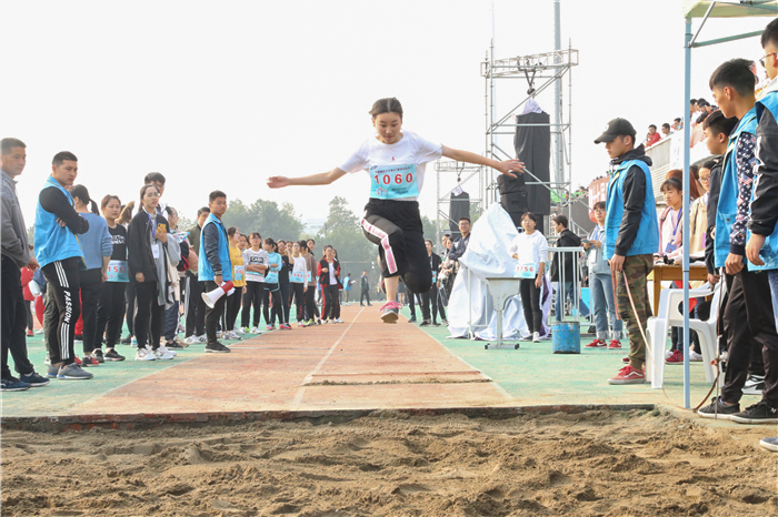 在员工们进行紧张比赛的同时,师大的部分教职工老师们也在身体力行,亲身上场,为同学们预热赛场、做好榜样。其中,教师高月在女子跳高比赛中夺得桂冠。起步、跳跃、反转、落地,一气呵成,展示的是教职工的活力与激情。