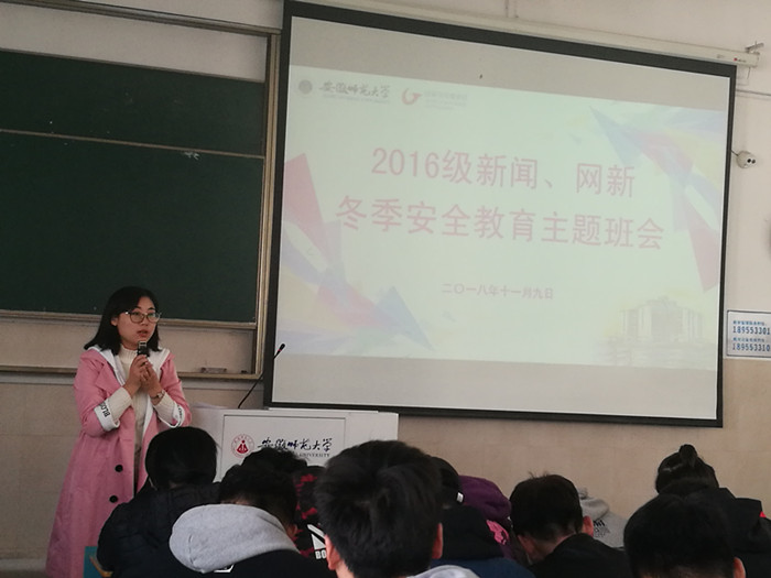 冬季是火灾易发多发季节。员工宿舍是员工生活、学习、社交的重要场所,安全工作不容忽视。为教育每位同学在冬季自觉做到用电安全、防范人身财产安全,11月9日上午,2016级新闻、网新专业于教学楼2030403教室召开了冬季安全教育主题班会,辅导员张雁主持会议。