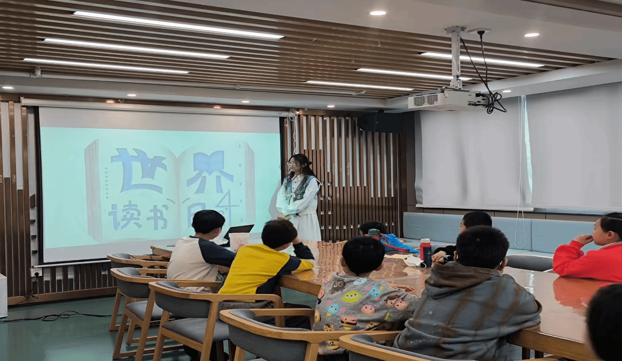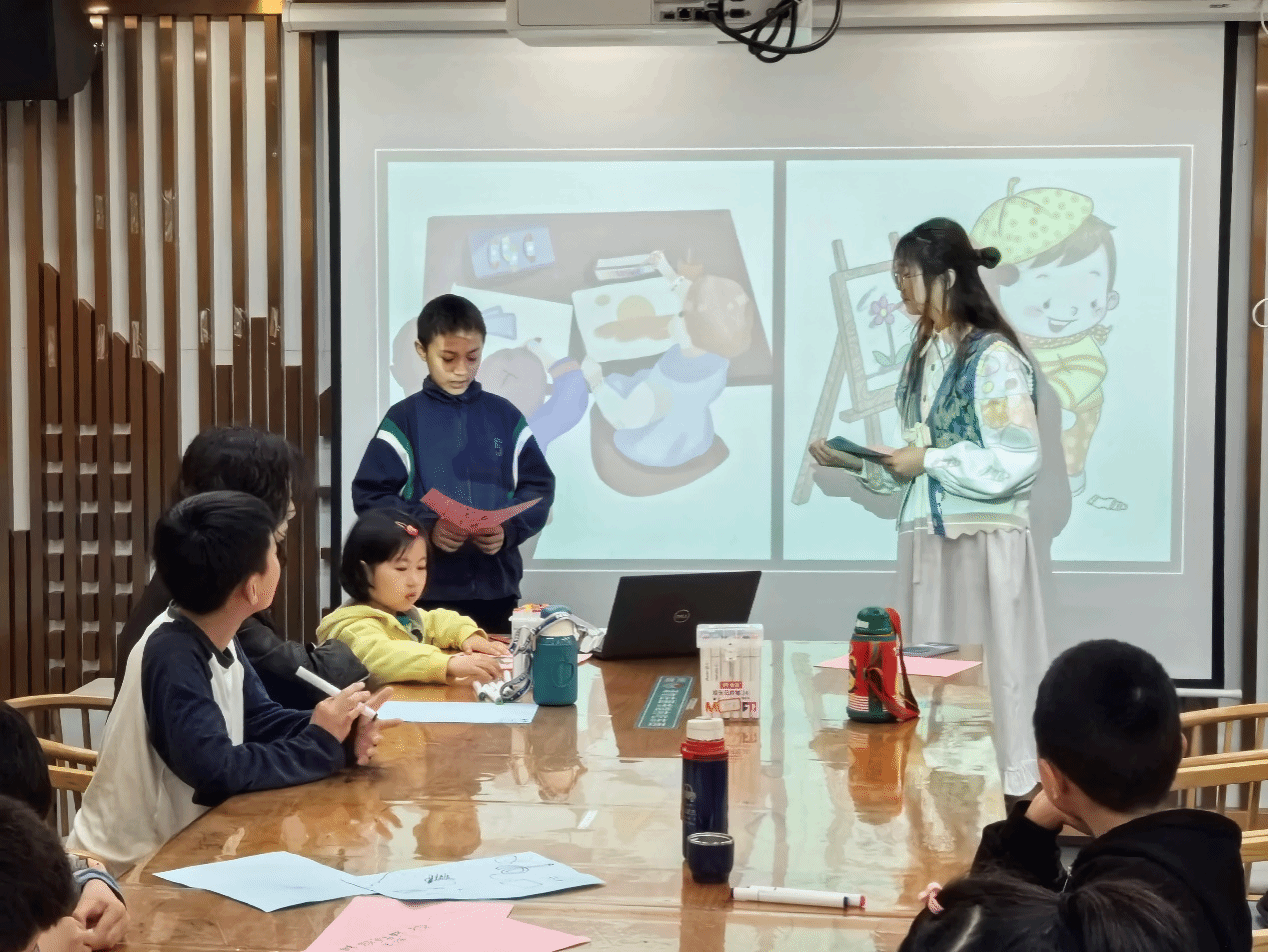 活动中,宣讲人刘思茗通过介绍世界读书日、组织小朋友和家长合作绘画故事等活动环节,让小朋友们充分体会到了读书的重要性。23级新闻学员工王光甫为积极完成任务的小朋友们发放小礼物。
