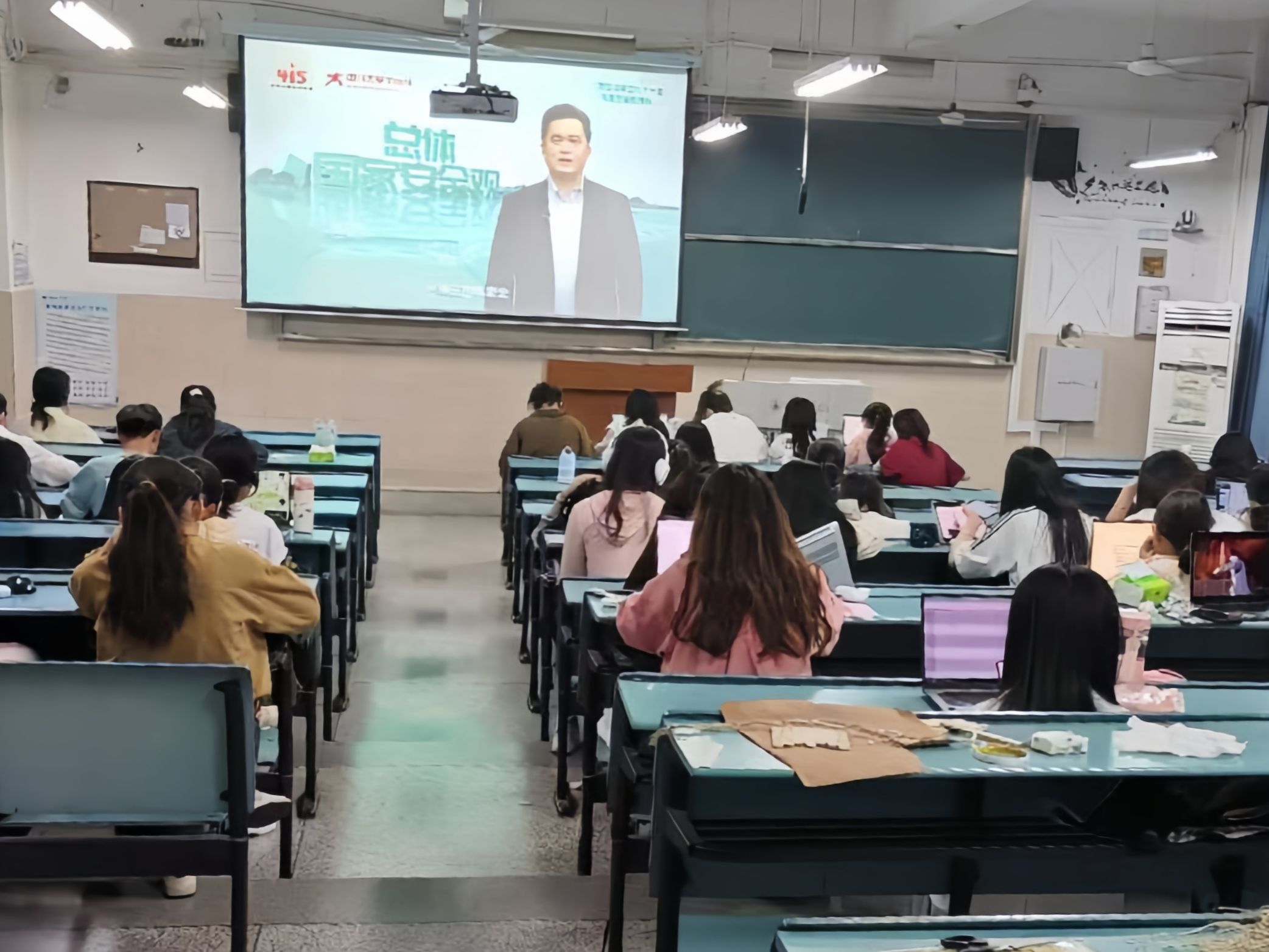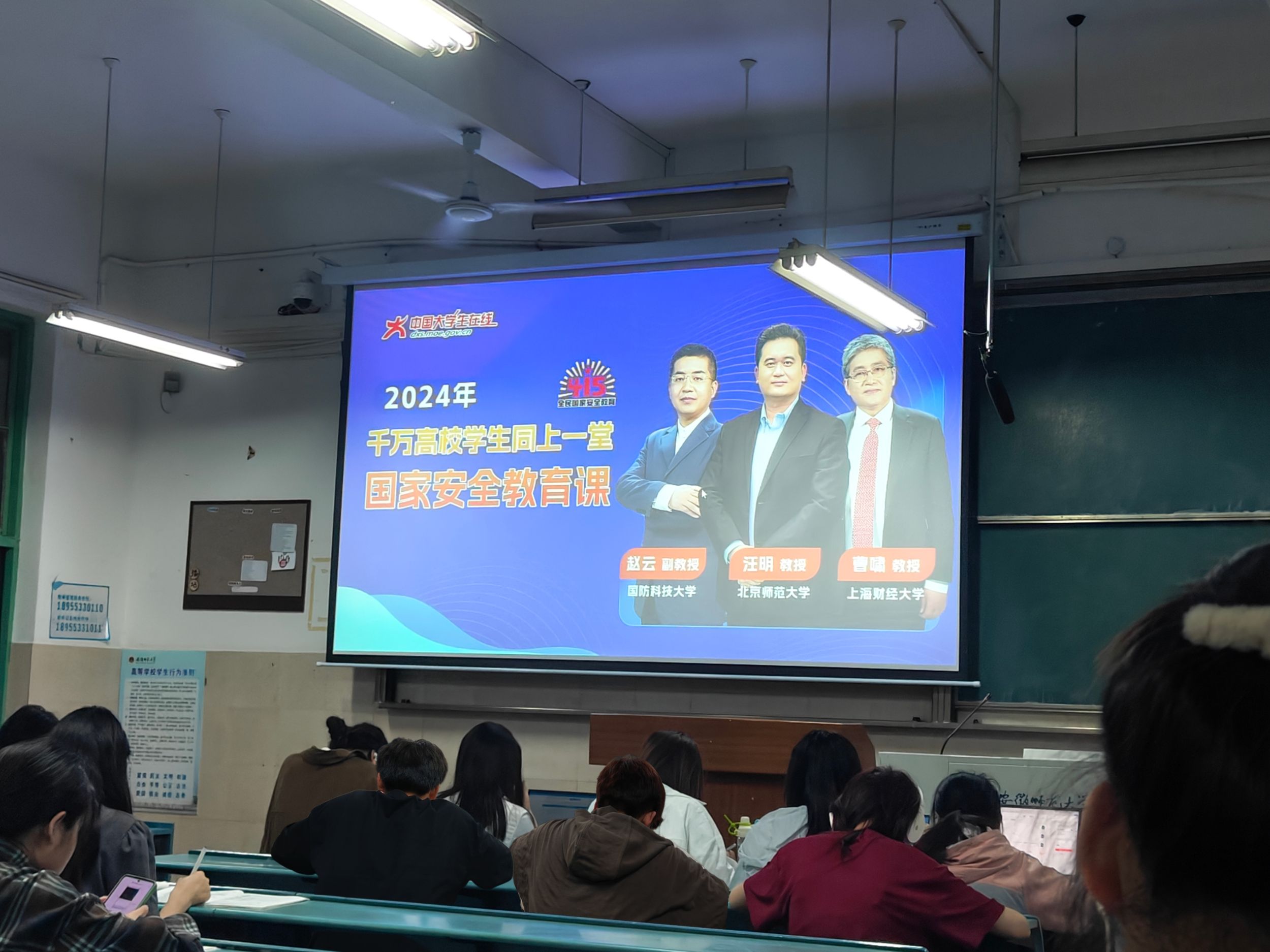 今年的4月15日为第九个全民国家安全教育日,为牢固树立总体国家安全观,加快构建新安全格局,4月14日下午3时,教育部通过中国老员工在线官网及中国老员工在线多个平台直播以“千万高校员工同上一堂国家安全教育课”为主题的公开课。4月15日晚,2023级新闻学专业在安全委员李波涛、白晶的带领下利用晚自习时间一同收看学习。
