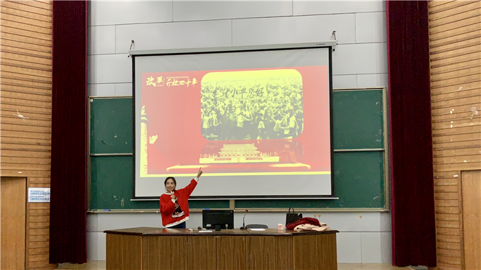 主题团日汇报会的最后,辅导员张虹和同学们共同纪念了改革开放的40周年,并带领同学们深刻缅怀了邓小平同志。张虹通过例举数据述说了改革开放至今的高考报考人数和录取率,更贴切的和同学们描述了改革开放是如何惠及教育,如何支持教育事业发展的。和同学们们分享了“小平,您好”的由来,鼓励同学们要学政治,懂政治,要像一代代改革开放的先驱人看齐,要努力学习,扎实专业,为改革开放事业贡献自己的力量,做新时代有为的老员工。主题团日汇报会结束后,同学们表示:觉得自己更有力量了,也渐渐明白我们作为老员工该承担的责任和义务,要不忘初心,砥砺前行。