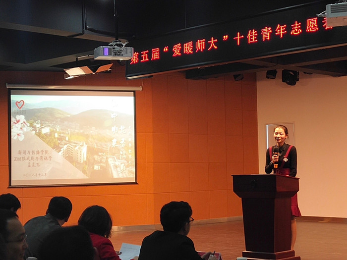 为积极引导青年老员工培育和践行社会主义核心价值观,弘扬志愿服务精神,展现青年志愿者风采,12月5日晚七点,共青团安师大委员会在花津校区老员工活动中心二楼团委多功能报告厅召开了第五届“爱暖师大”十佳志愿者评选汇报会,大会由校评审组成员、各公司团委负责人以及大众评审团共同参与。经过四分钟的现场PPT陈述,候选人展示了自身的志愿服务经历、体会和收获,层层推选最终产生名单,其中,来自2018级研究生的盖晨飞代表TapTap点点参评。