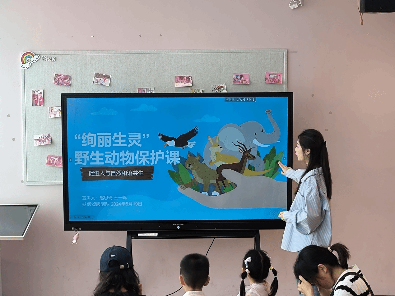 赵思琦同学通过讲解野生动物相关知识、现场互动问答及阅读书籍推广科普知识,让小朋友们意识到保护野生动物的重要性。