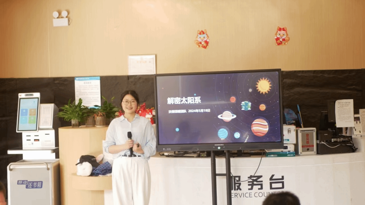 18日,23级新闻学员工何木瑶、王光甫、赵金哥前往花津书苑举办了“解密太阳系”主题活动,为小朋友们开展了一期关于探索太阳系,认识外界星球的课外知识科普课堂。