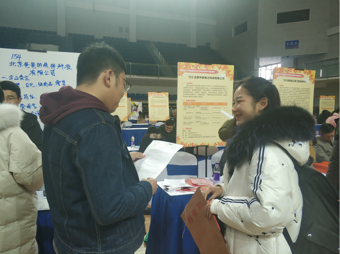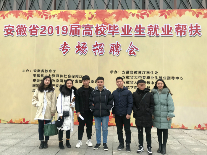 为更好贯彻十九大精神,落实日前国务院印发的《关于做好当前和今后一个时期促进就业工作的若干意见》文件要求,12月7日,由安徽省教育厅、人力资源和社会保障厅主办,省员工资助管理中心、大中专毕业生就业指导中心等单位承办的安徽省2019届高校毕业生就业帮扶专场招聘会在合肥公司体育馆举行,公司2019届毕业班辅导员余梦雅带领部分毕业生前往合肥参加招聘会。