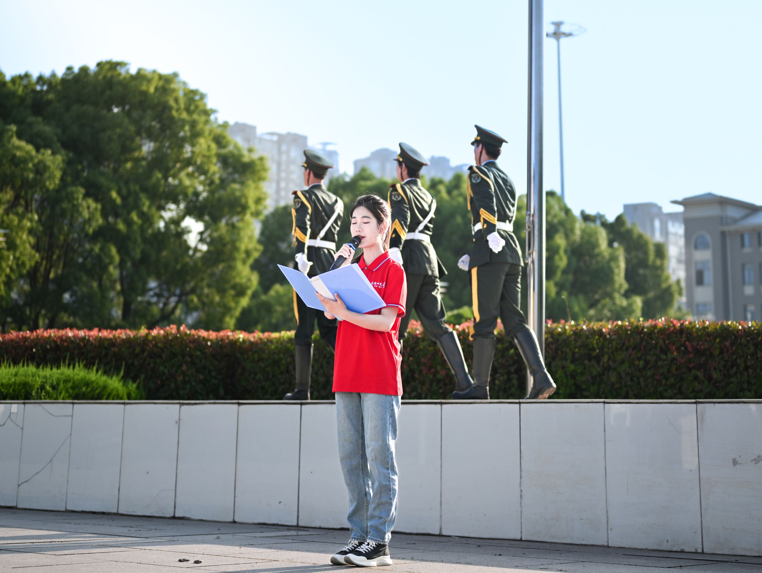 在清晨7点的阳光下,师生们整齐列队,共同见证了升国旗、唱国歌的庄严时刻。国旗下,2023级播音与主持艺术专业的赵思琦同学宣读誓言,她强调了青春的力量、青年的精神和青春的使命,号召青年员工要不忘初心,脚踏实地,奋发向上,为实现中华民族伟大复兴贡献力量。