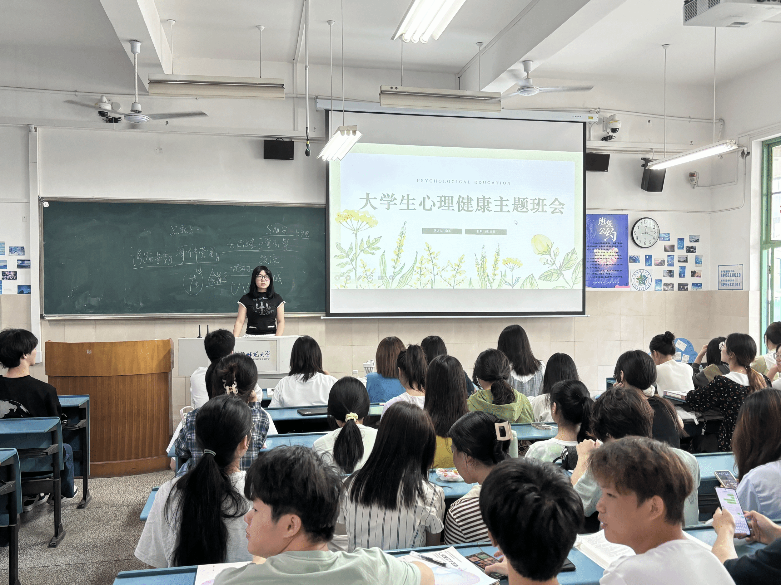 心理健康委员俞玉还特地为班级同学策划了一场别开生面的心理健康主题班会。同学们围绕“如何保持心理健康”这一话题展开了热烈的讨论,大家纷纷分享了自己的经验和看法,现场气氛十分活跃。在班会的尾声,还设置了一个互动环节——心理健康知识问答。同学们积极参与,争相抢答,不仅巩固了所学的心理健康知识,还收获了丰富的奖品。
