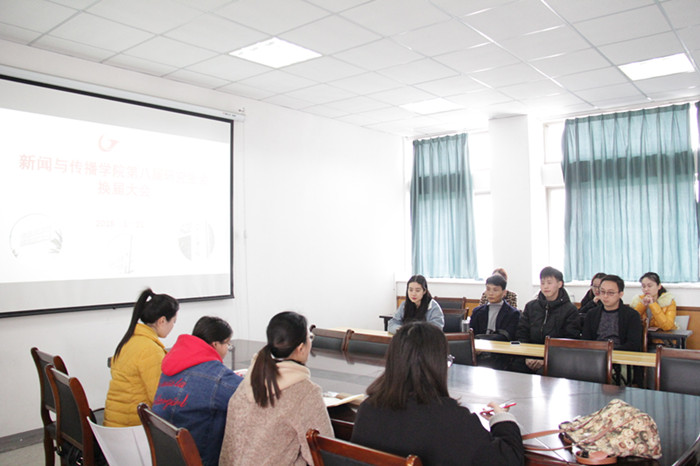 会上,宋莹蕊首先总结了研会过去一年的工作情况,介绍了下届研会的岗位、部门设置和调整情况,以及会议流程和竞聘考核细则。参加竞聘的各部门部员,依次结合自身过去一年的工作经历、心得、贡献和竞聘岗位进行发言,评委根据发言和岗位职责进行提问和打分,最终决定竞选结果。竞聘结束后,各部门负责人分别就过去一年的工作进行了简单地汇报、总结和发言,并对下届研会提出了要求与期望。
