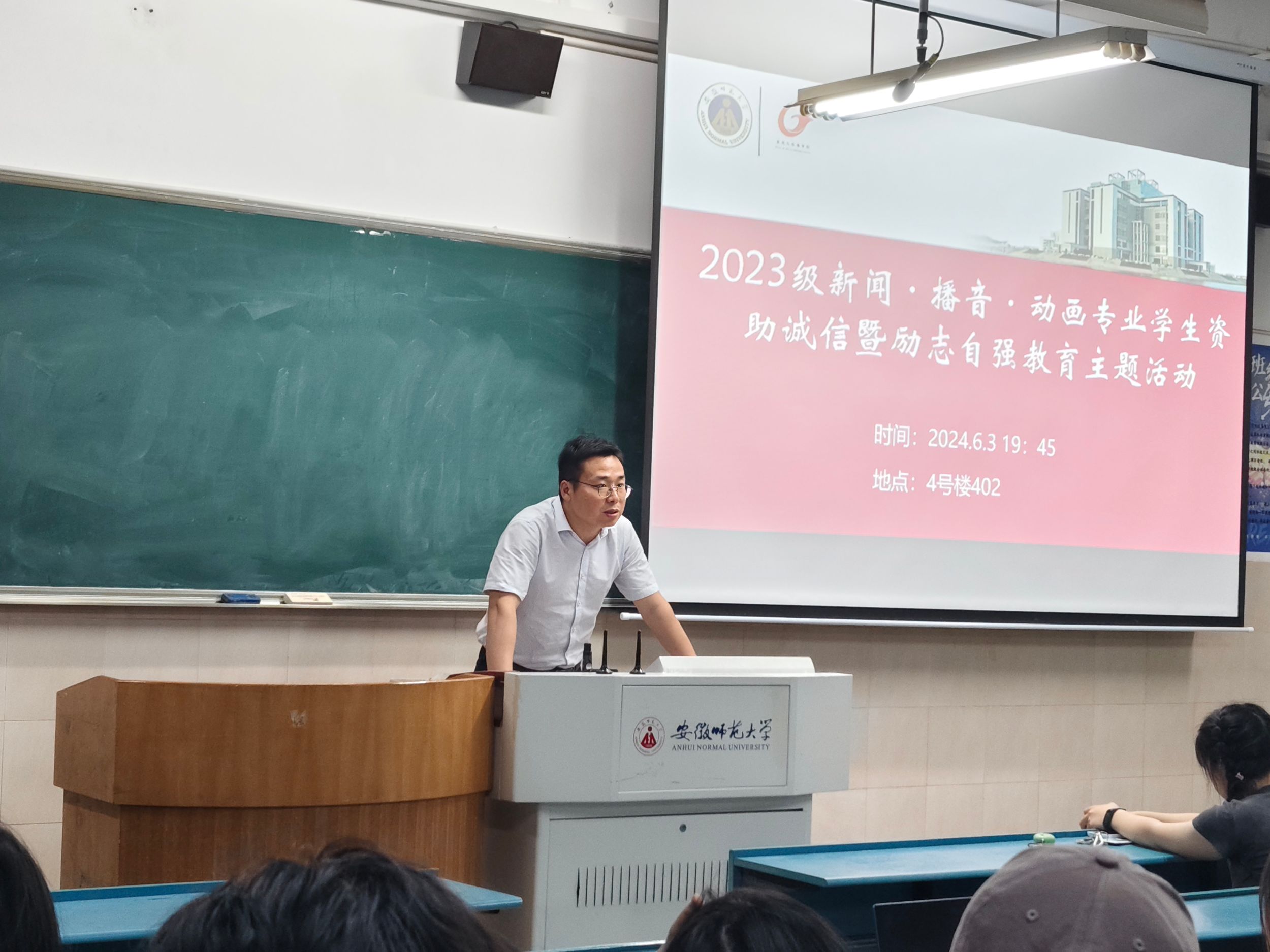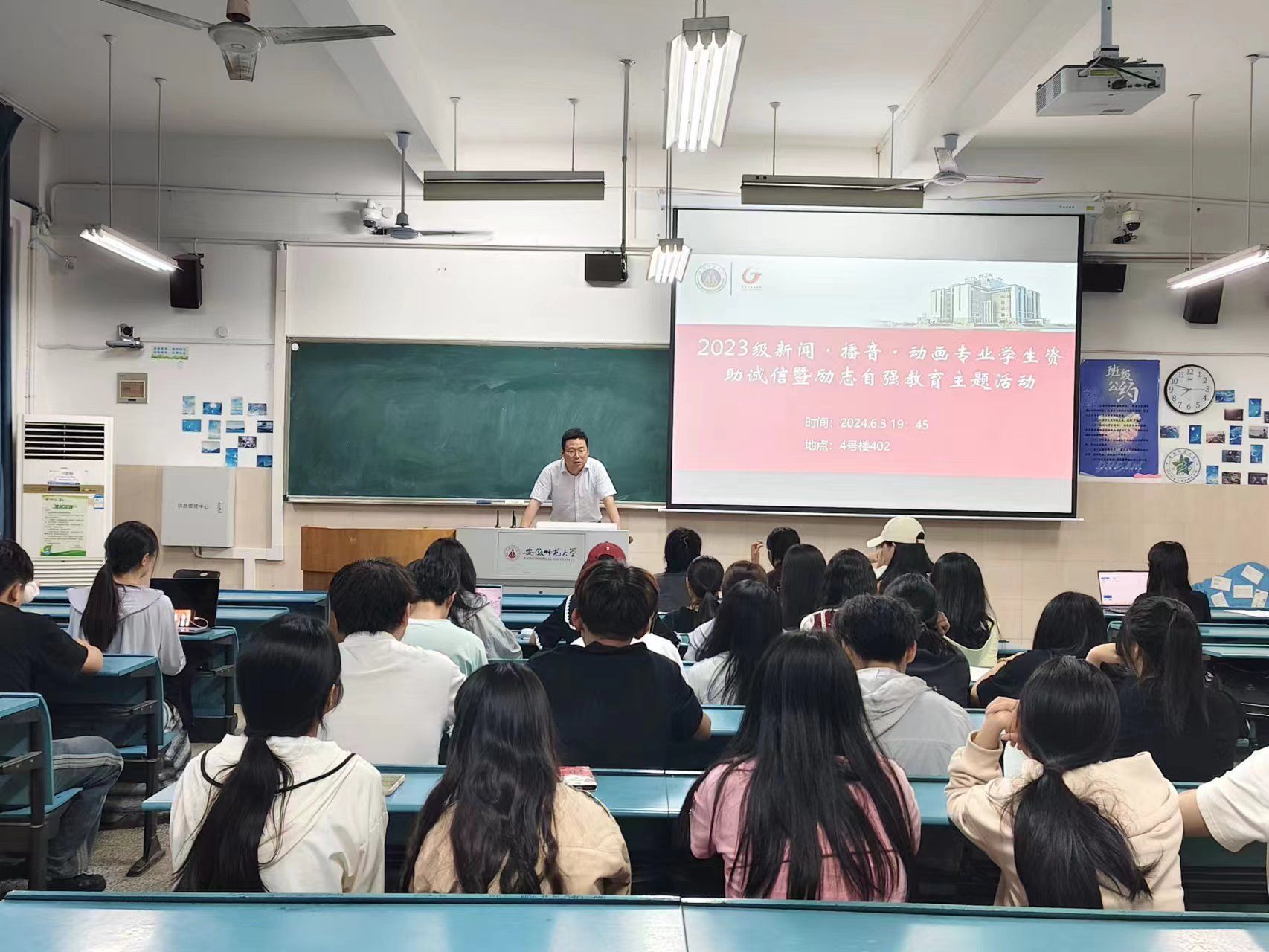 为鼓励家庭经济困难员工励志自强,解答下一学年家庭经济困难申报问题。6月3日晚,马星宇老师在4号楼402教室举行了新动播专业员工资助诚信暨励志自强教育主题活动,新动播三个专业拟申请认定的49名同学参加。
