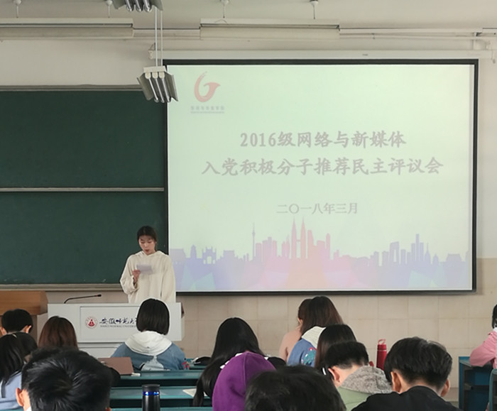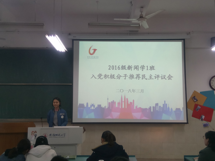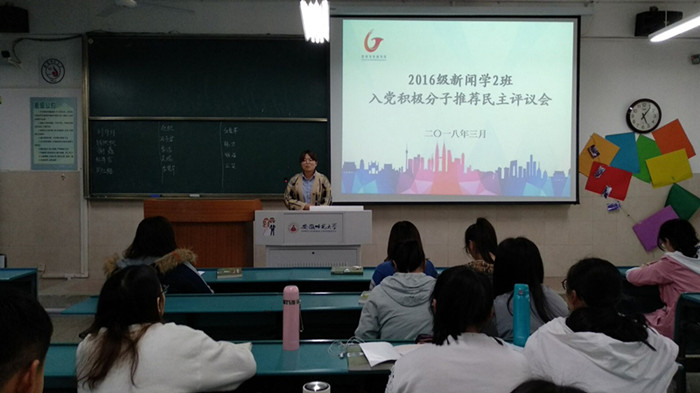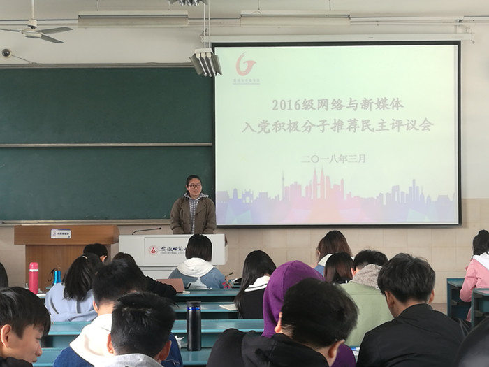 近期,2016级新闻、网新专业相继在教室开展入党积极分子推优会,杨屿璠等11位同学参与了竞选,会议由辅导员老师张雁主持。