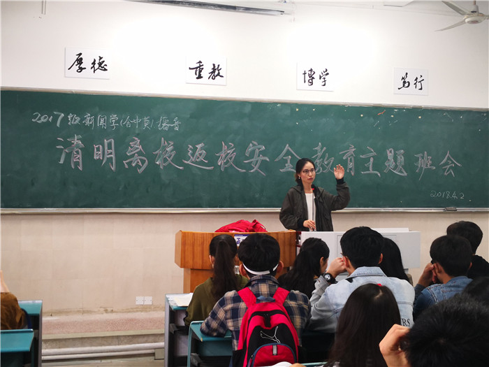 安全是一切工作的起点,清明假期来临之际,2017级新闻(含中英)、播音专业于4月2日,在2030402教室召开清明离校返校安全教育主题班会。班会由辅导员张虹主持,全体同学参会。