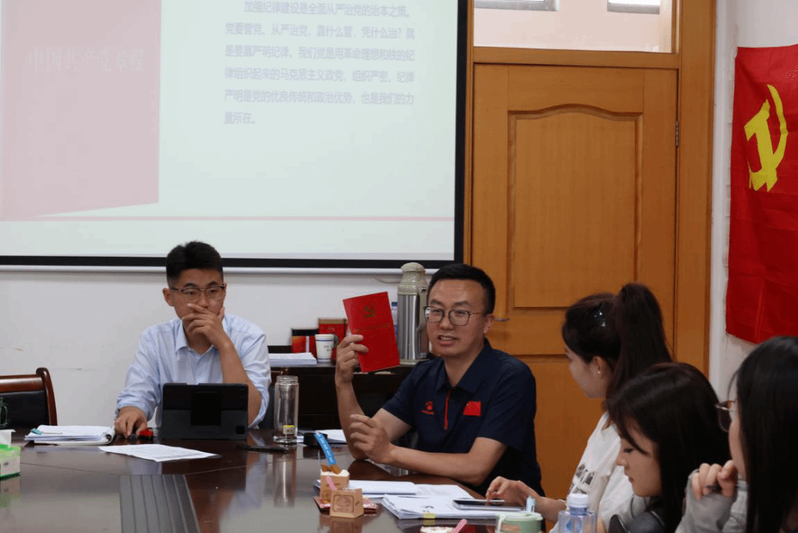 支部书记刘熠结合中华文化传统和校园具体案例,讲授以《全面从严治党》为题的党纪学习教育专题党课。公司党委副书记吴青山向支部内党员同志们强调,《中国共产党纪律处分条例》是底线,支部内党员同志们党纪学习教育要得到提升,党员同志们要在工作规范和工作纪律上发挥领头人的表率、榜样作用。