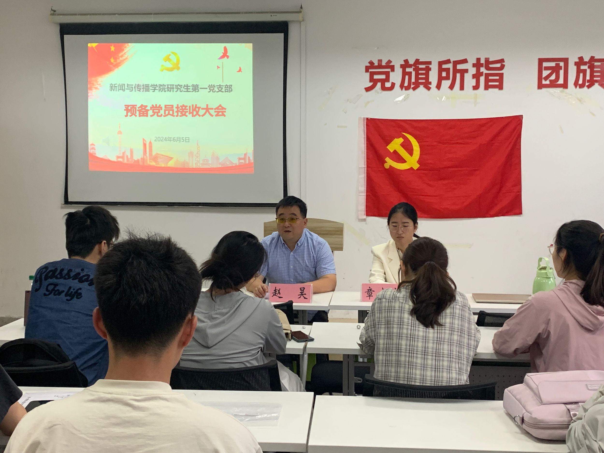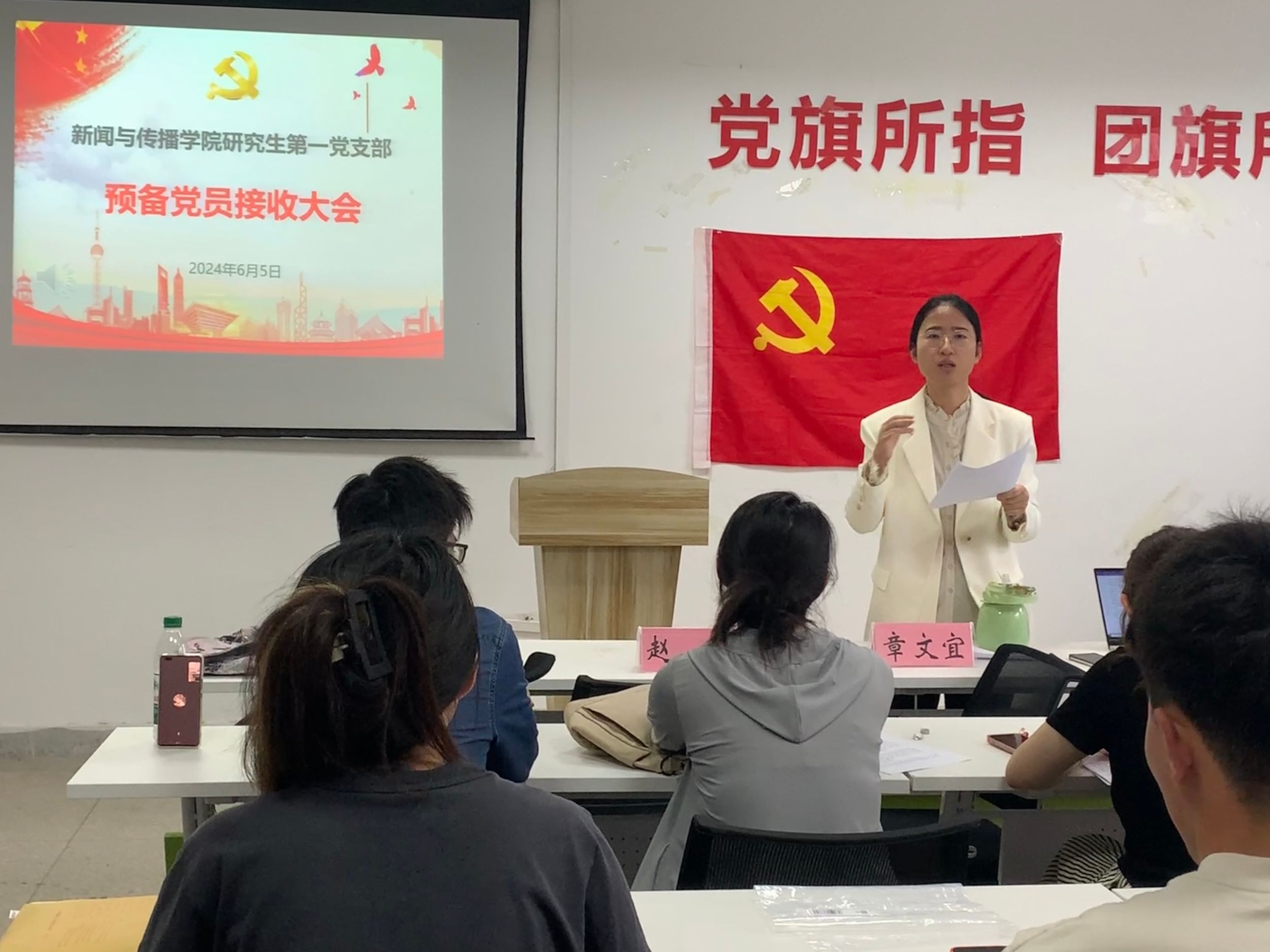 接收预备党员大会由章文宜主持。田源和李文汇两位同志从入党动机、对党的认识、个人履历、家属及主要社会关系情况、自我认识以及需要向党组织说明的问题等方面,向大会进行了汇报。随后入党介绍人杨韵箫等四位同志结合发展对象的群众座谈会记录、培养考察情况,实事求是地将各位同志的个人情况向大会做了详细介绍,并对其日后努力方向提出了相应的要求与意见。胡可同志代表支委会发表参考意见。入党介绍人及与会党员都肯定了两位发展对象在各个方面做出了优异成绩,对不足之处也提出了建议。经支部正式党员投票,一致同意接收田源同志和李文汇同志为中共预备党员。