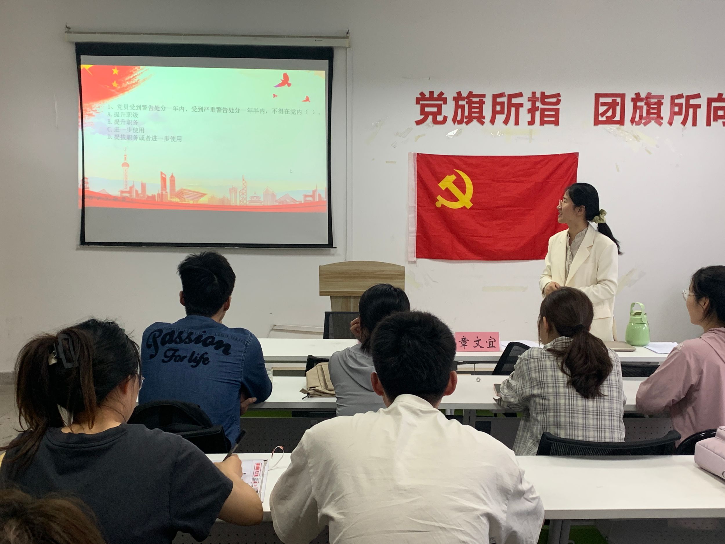 接着,由支部宣传委员贾情情领学《中国共产党纪律处分条例》中第七章“违反组织、人事纪律的行为”内容,结合研究生生活重点学习了其中第六十一条、第六十二条、第六十三条的内容。员工党员谢正湘和宋凯迪同志在深入学习后发表自己的心得感悟,她们都认为要时刻牢记党的组织、人事纪律,在思想上、政治上、行动上都要遵守党的纪律,和党中央保持高度统一。随后,在支委的组织下开展了党纪知识竞赛,检验员工党员对《中国共产党纪律处分条例》的掌握程度和知识储备情况,进一步增强党性观念和纪律意识。