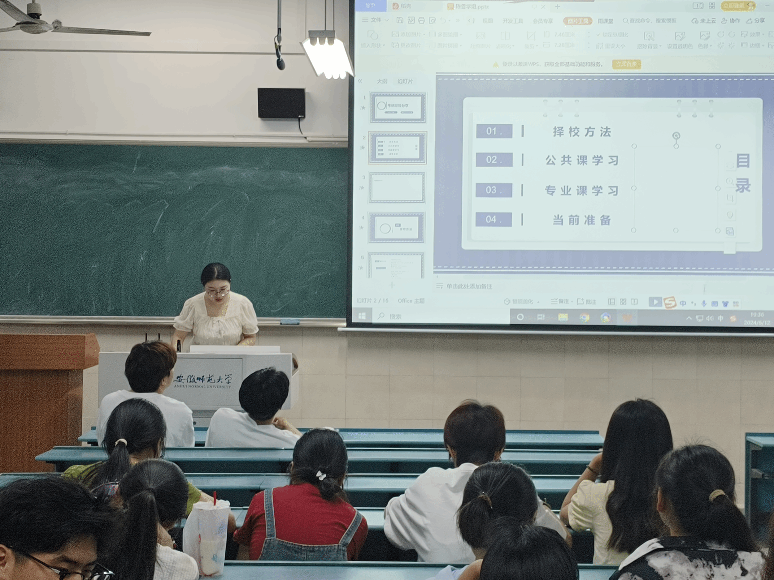 随后,由推免至东北师范大学的魏晓雪学姐向同学们分享她的保研推免历程。她首先对学分、绩点、综测、专业竞赛、推免等名词进行了解释并告诉大家保研推免的名额相当紧凑,让同学们有了大致的了解。之后通过举自己班级学期末的综测成绩的例子告诉大家,要认真对待每一门课程,否则,失之毫厘,差之千里,最后细微的差距就能影响成败。接着,味晓雪又介绍了夏令营以及九推相关的注意事项,提醒大家根据时间和具体情况做好取舍。最后,她分享了另一位研支团的学姐的微信,可以咨询通过研支团保研的渠道和经验。