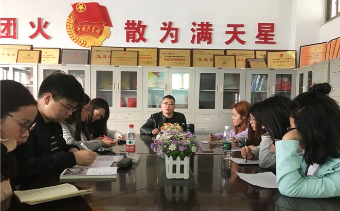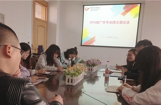 4月15日下午5:30,实习辅导员李俊峰于公司楼三楼会议室召开了16广告学专业团支部会议,16广告学全体团干和入党积极分子参与会议。