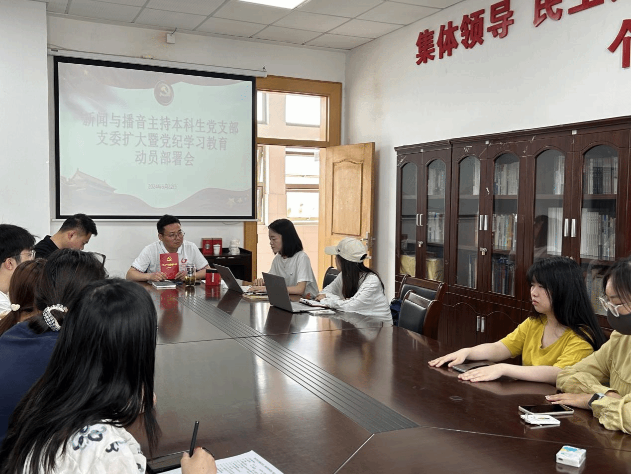 5月22日上午,新闻与播音主持本科生党支部在公司508会议室召开支委扩大暨党纪学习教育动员部署会。会议由支部书记马星宇主持,支部部分正式党员参加会议。