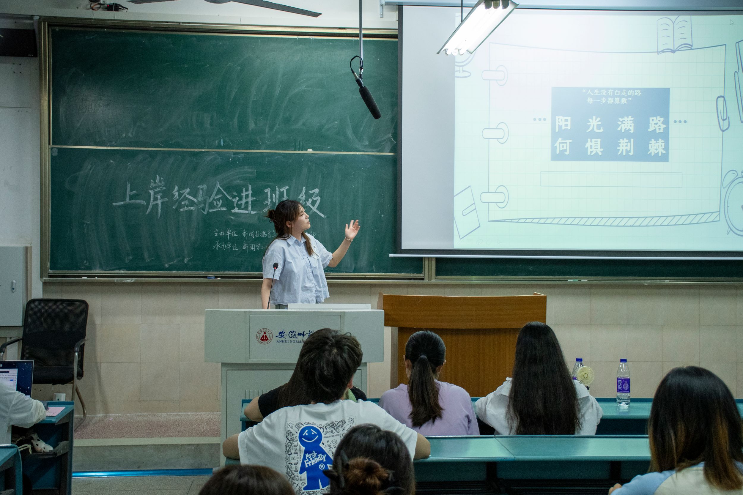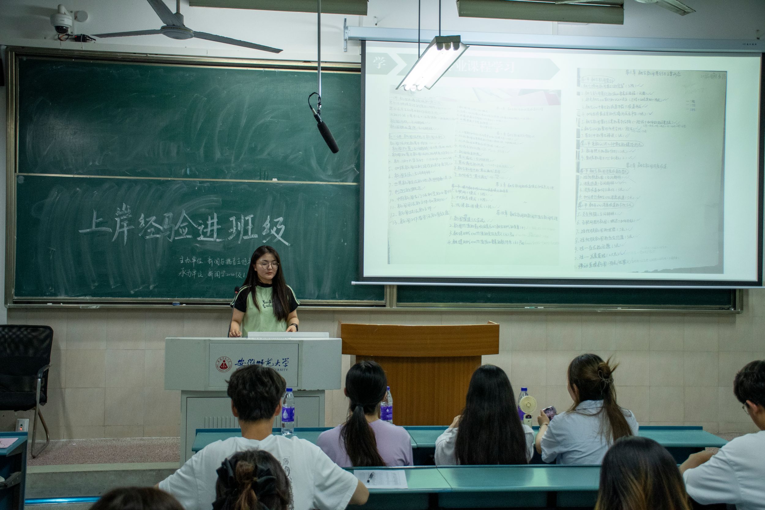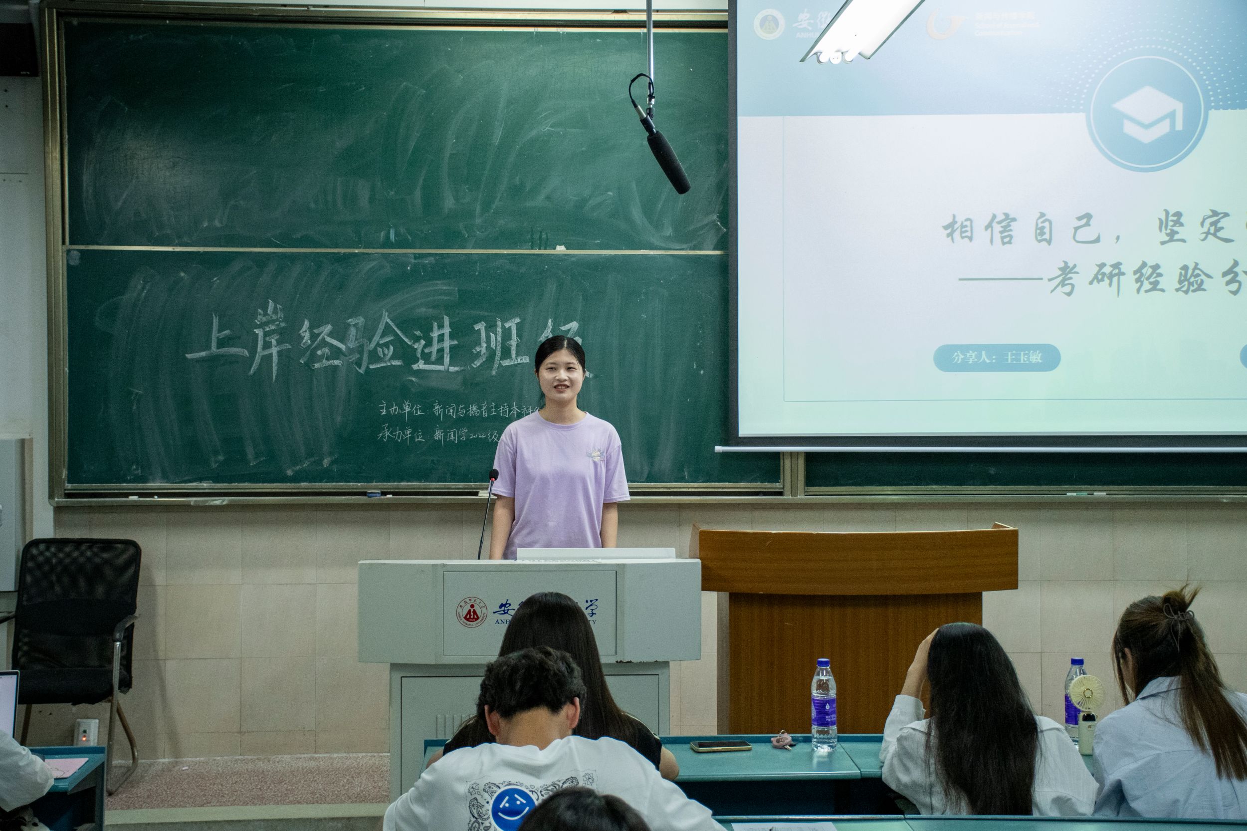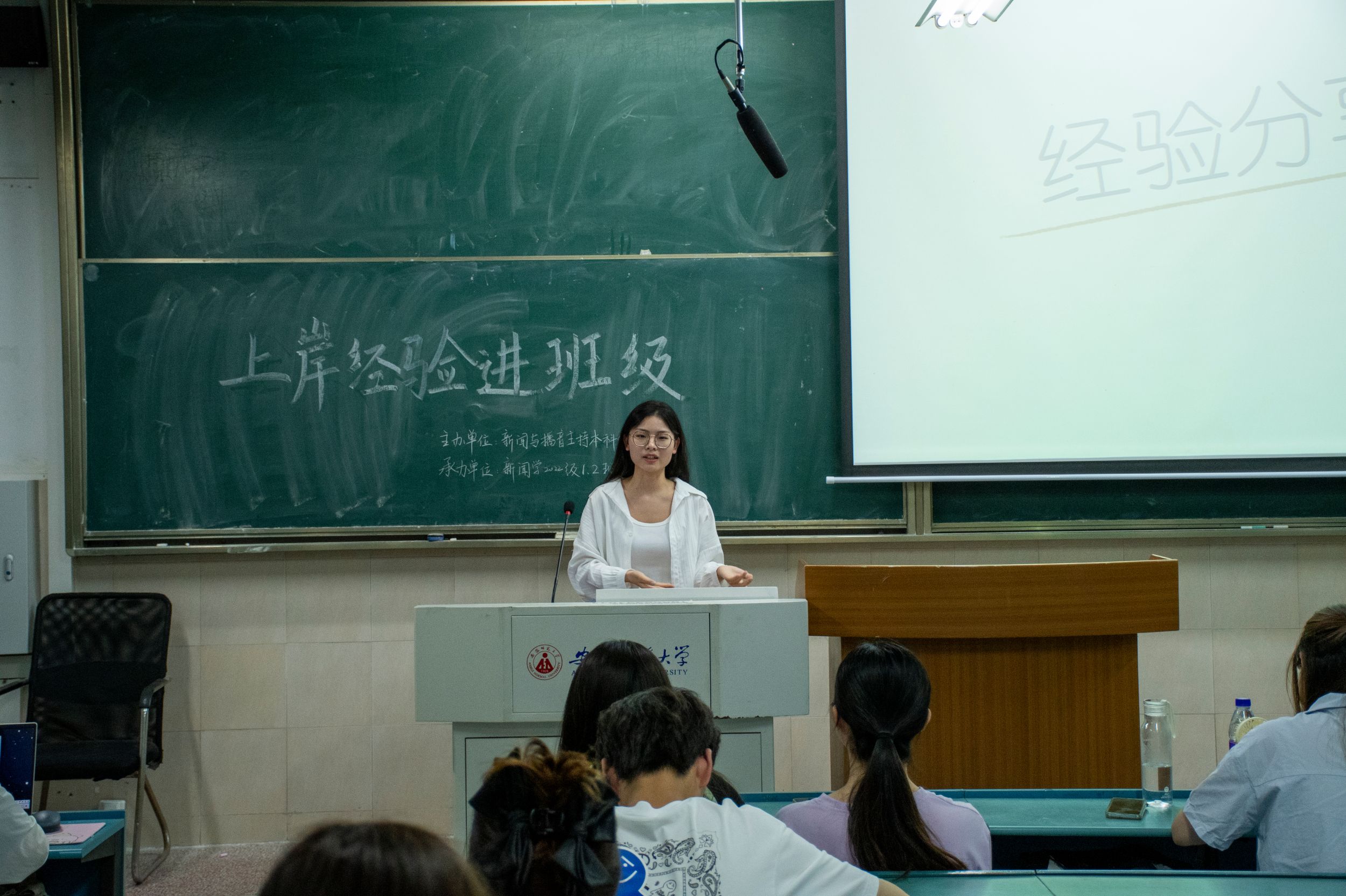为进一步提升员工的老员工活规划,解决同学们考研择校、备考安排、应对技巧和学习方式方法的相关疑惑,2024年6月4日晚七点,新闻与播音主持本科生党支部组织开展了“学海征程,研梦起航”上岸经验进班级分享活动,邀请20级新闻学专业鲍孟佳、王玉敏、陈可和韩睿琦四位优秀毕业生分享上岸经验。讲座由22级新闻学班长杨志远主持,2022级新闻学全体员工参加。