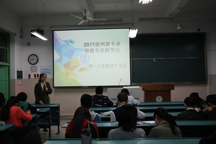 辅修课程的选择对2017级同学来说是一个重要的决定,在同学们对辅修充满疑问的情况下,17级网新专业在教学楼2050104教室召开了辅修解答会。会议由辅导员老师张雁主持。
