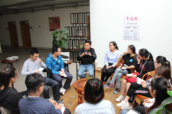 4月25日下午,马克思主义新闻观学习社新思谈第九期于老员工活动中心青春之声开讲。此次邀请院团委副书记马星宇主讲,辅导员张雁以及16级新闻学的同学们参与座谈。