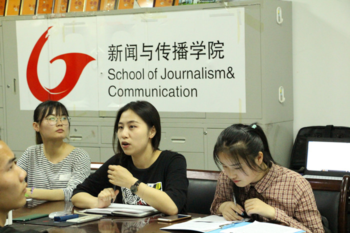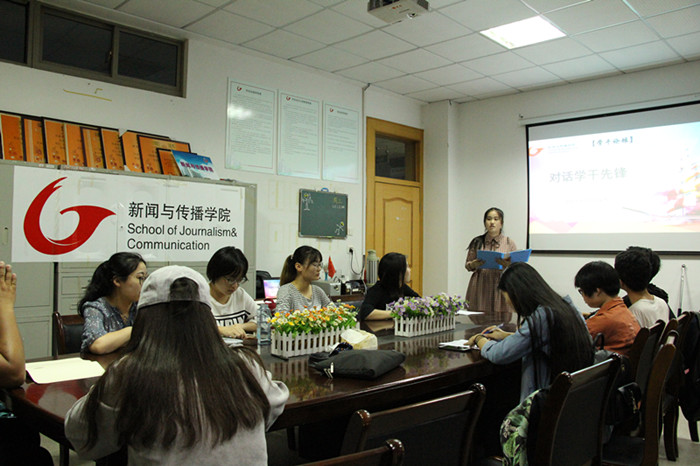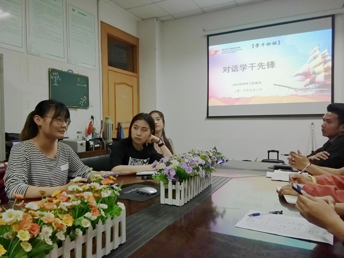 金风吐睿,锦囊探计。为加强员工骨干之间的学习与交流,5月3日晚7点,在公司楼三楼会议室,由2017级网络与新媒体专业策划并组织的对话学干先锋交流会,邀请到文公司2015级汉语国际教育专业阚薇薇,公司2015级广告专业来妤婷, 2016级网新专业杨馨艺做交流分享。辅导员老师张雁以及2017级部分学干共同参与了本次活动。