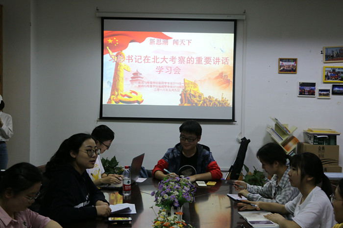 5月9日晚,2016级新闻学专业在公司会议室举行了“新思潮·闻天下”团学小组学习大会,2016级新闻学班委、预备党员、入党积极分子参加了此次学习会。学习会以习近平总书记在北京大学师生座谈会上的讲话和马克思诞辰200周年作为背景,帮助同学们从思想上认识到青年,尤其是优秀的青年团员与党员在这个过程中所肩负的重大历史使命至关重要。会议由辅导员张雁主持。