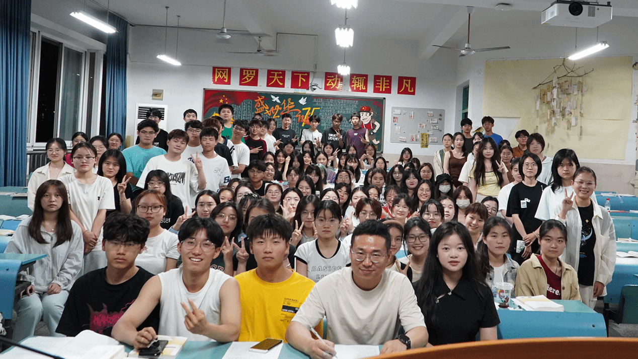 会上,马老师首先带领同学们回顾从2023年9月同学们迈入校门至今已经过去了近三百天,他说,大家在师大的时光已经度过了三分之一。于是,马老师分别用四种不同的诗句来总结同学们一学年的收获。“莫听穿林打叶生,何妨吟啸且徐行”,同学们接受了舆论的审视,坚定新闻学专业。“山重水复疑无路,柳暗花明又一村”,历经一年,大家逐渐适应平视公司生活。“坐地日行八万里,巡天遥看一千河”,同学们透视新闻专业,有了探索专业的创作能力。“不畏浮云遮望眼,自缘身在最高层”,俯视曾经走过的路,大家已经确定了更宽广的视野,包括个人发展、大学规划、专业学习等。