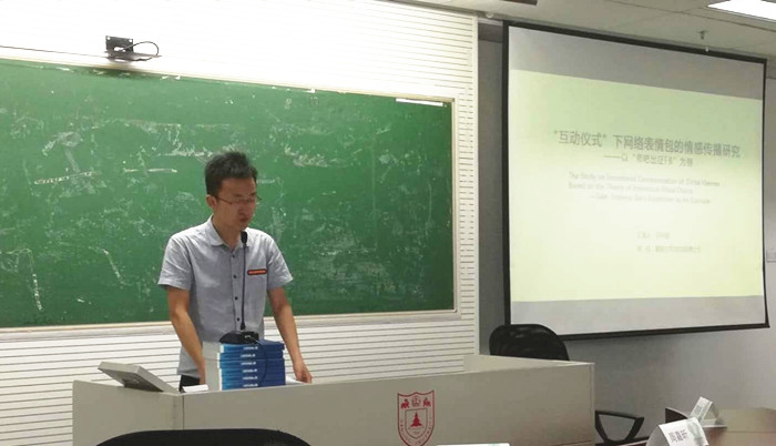谷学强同学此次投稿的论文题目是《互动仪式下网络表情包的情感传播研究》,该论文是他硕士论文中的一个章节。主要以帝吧出征为案例分析,探讨在帝吧出征群体性事件中情感如何通过表情包的使用来集聚个体情绪形成群体情感以及情感如何在表情包的生产制作传播过程中动员群体参与集体行动。本次汇报得到了南京大学王佳鹏老师以及中山大学林仲轩老师的深度点评和提问,收获良多,对眼下论文的修改及未来从事学术研究的工作有较大的帮助和鼓励。