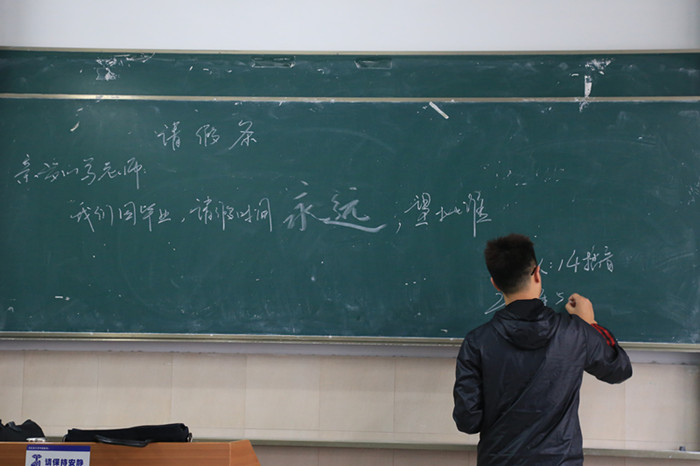 当辅导员马星宇老师签下这一份集体请假条,写上“顺利毕业,延迟离校”几个字时,就预示着14级毕业班距离离开又更近了一步。尽管时光不倒流,但情谊永保留,愿同学们前程似锦,未来归来如斯。团支部、班委干部还组织了毕业纪录片拍摄。