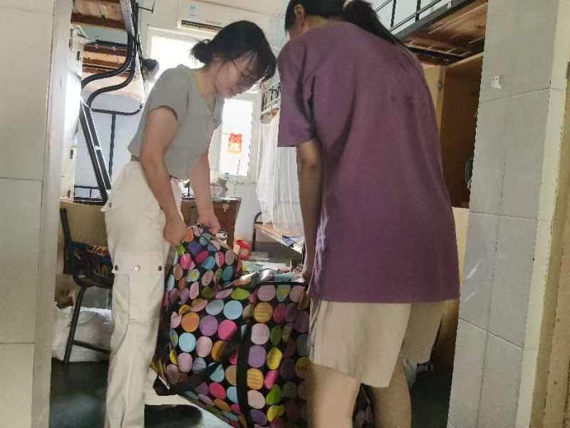 搬迁当天,各班男生志愿者早早便来帮忙,利用自己的小推车帮忙运送行李,员工干部兵分两路在起点和终点调度寝室搬迁顺序,并安排跟车同学,防止出现搬错行李或丢失行李的状况。志愿者们冒着酷暑往返于新旧寝室之间,他们或拎、或抗、或抬,帮助同学搬送到屋内,尽管衣服已经湿透,但他们仍然热情十足,干劲满满,有条不紊地完成行李物品的上楼入室。提前完成搬迁的同学也加入到了志愿者的行列,充分发扬了互帮互助,团结协作的志愿服务精神。至下午5时许,各专业搬迁任务基本完成,搬迁工作圆满结束。