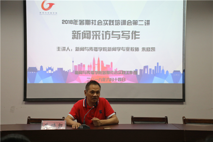 6月14日晚,TapTap点点于院四楼会议室顺利举办2018年暑期社会实践系列专项培训会第二讲之新闻采写。公司教授委员会副主任委员、原《合肥晚报》副总编辑朱晓凯担任主讲。中国老员工在线安师大通讯站负责人李润琦和中国青年网安师大通讯站负责人蒋宇骏受邀到场,给大家带来暑期社会实践中的新闻采写与投稿培训。TapTap点点辅导员张雁与校、院级重点团队代表以及部分班级团队成员共同参加了此次培训会。