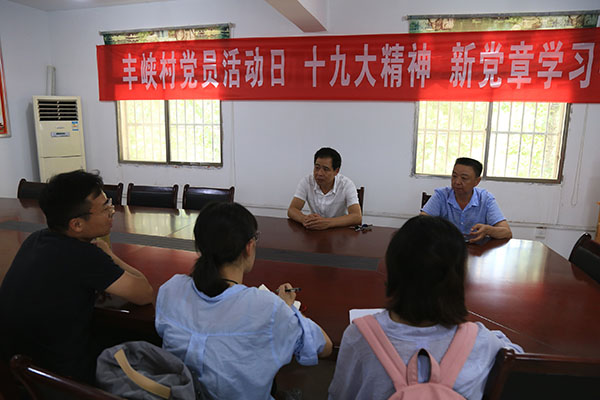 7月10日上午,踩点团队到达合肥市长丰县县政府,随后马星宇就此次暑期实践的主题——探索在皖三峡移民生产生活情况与水湖镇团委副书记杨娇进行了介绍。经由杨娇的指引,团队随即来到丰峡村并和村委会主任黄龙文进行交流、了解实地的基本情况:丰峡村从2000年建立至今已有18年的历史,600多名“三峡人”由于三峡水库的建设迁移到长丰县,而“丰峡村”的取名也正是分别来自“长丰”和“三峡”。黄龙文作为巫山县巫峡镇农民,2000年随移民大军迁入丰峡村,他见证了大迁徙,也见证了丰峡村的步步成长。经过与黄龙文的对话访谈和实地观察,团队对丰峡村的了解范围又进一步拓宽。