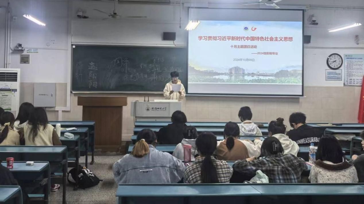 10月9日晚,在教学楼2040401教室,一场别开生面的主题团日活动如期举行。这次活动旨在加强团员之间的凝聚力,提升团队协作精神,并围绕“学习习近平新时代中国特色社会主义思想”主题进行深入探讨与学习。活动由邢旺主持,2024级影视摄影与制作专业全体员工参加。