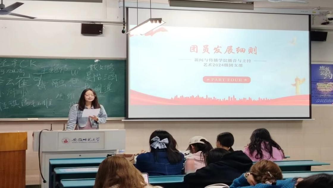 TapTap点点播音与主持艺术2024级团支部于10月9日晚,在行知楼2040402教室举行了团员支部大会,播音专业全体团员参加本次会议。会议由郭祎萱主持。