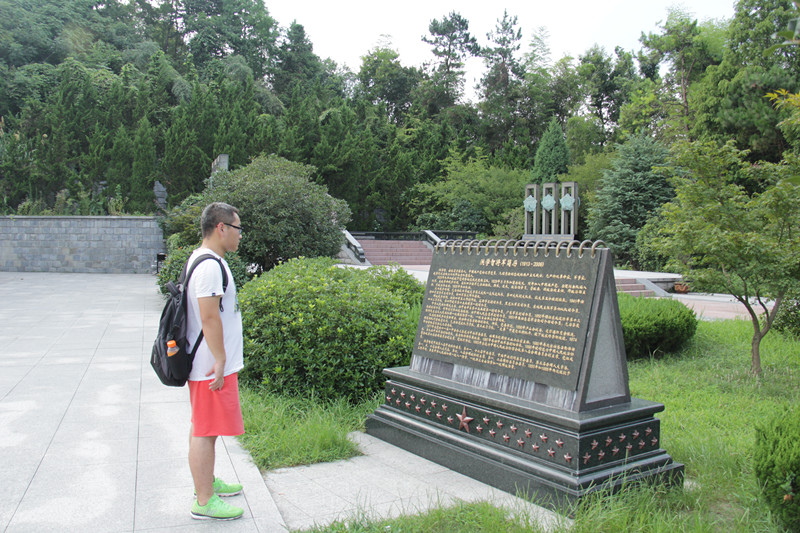 革命烈士纪念塔位于陵园中央,正面镌刻着刘伯承元帅亲笔题写的“燎原星火”四个镀金大字,背面刻着反映金寨革命斗争史的碑文。团队成员仔细阅读碑文,学习当地的革命斗争史。红军纪念堂位于纪念碑之后,团队成员瞻仰革命烈士纪念塔和红军纪念堂,表达对革命烈士们的敬仰。