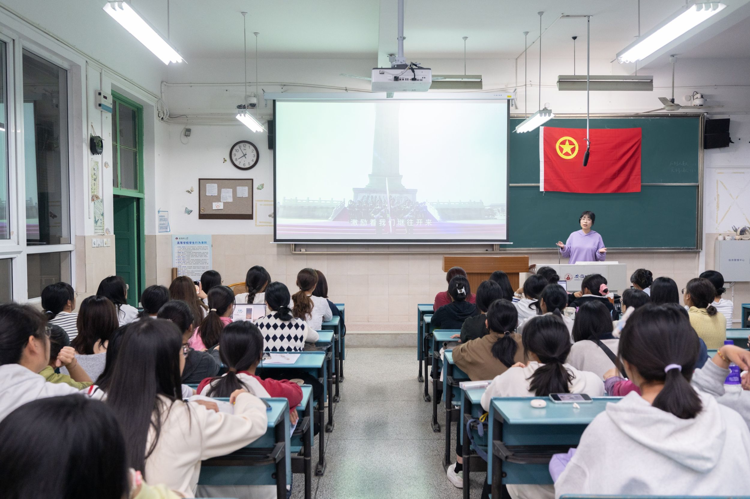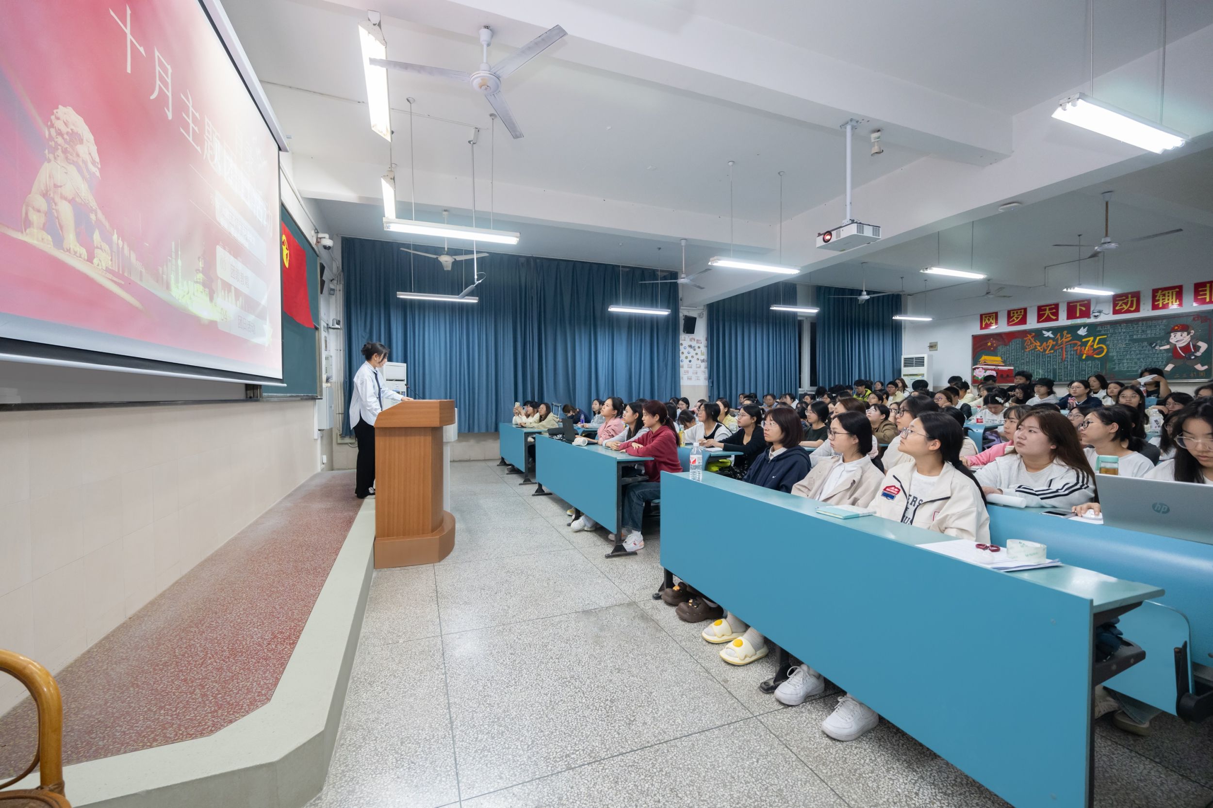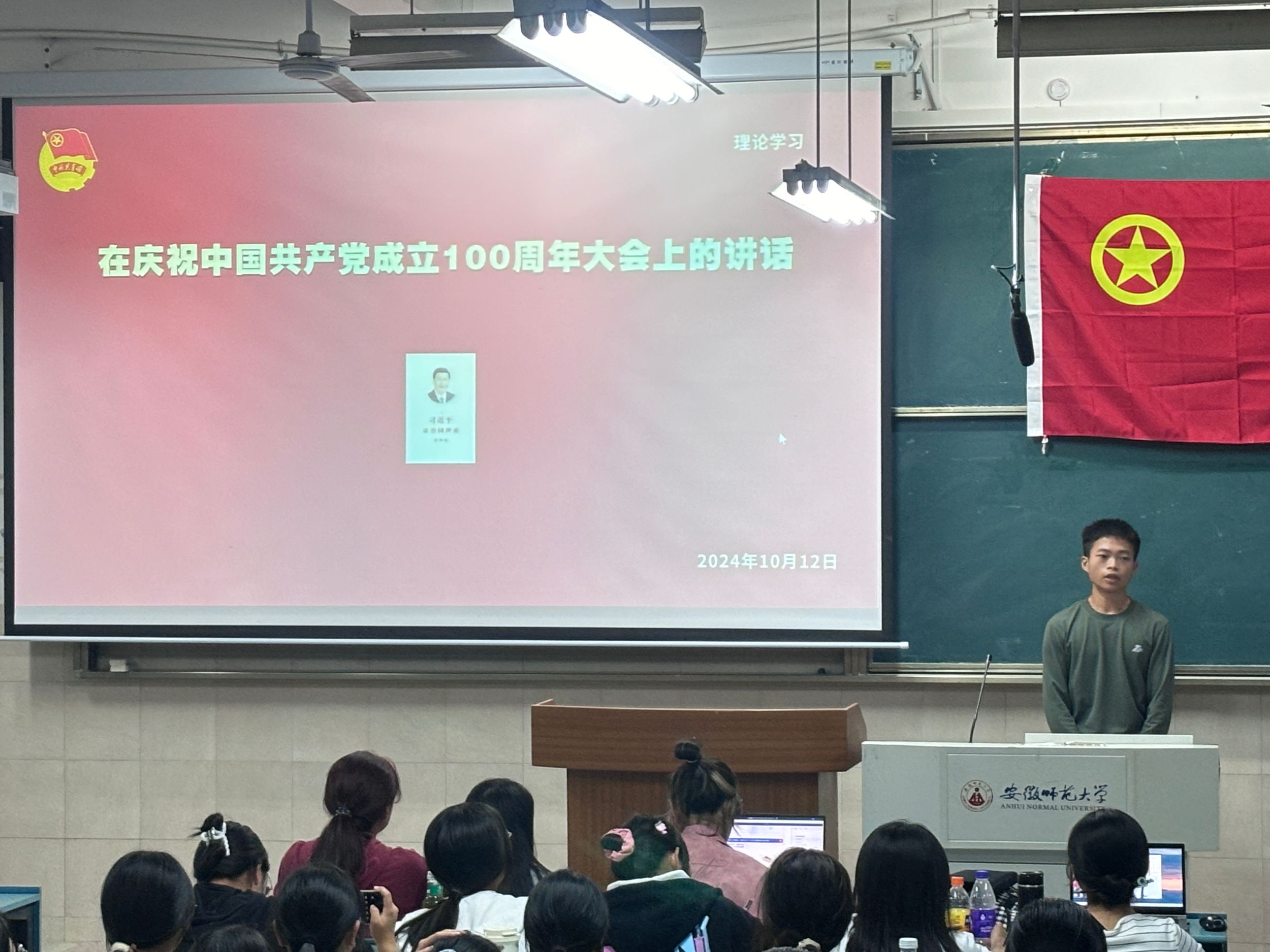 2024年10月12日晚,TapTap点点2024级新闻学一班团支部、二班团支部在教室2050302联合开展十月主题团日活动。此次活动由新闻学一班团支书廖一诺主持,新闻学二班宫鑫鑫教唱团歌,新闻学二班团支书肖融开展理论学习,24级新闻学全体团员、青年参加。